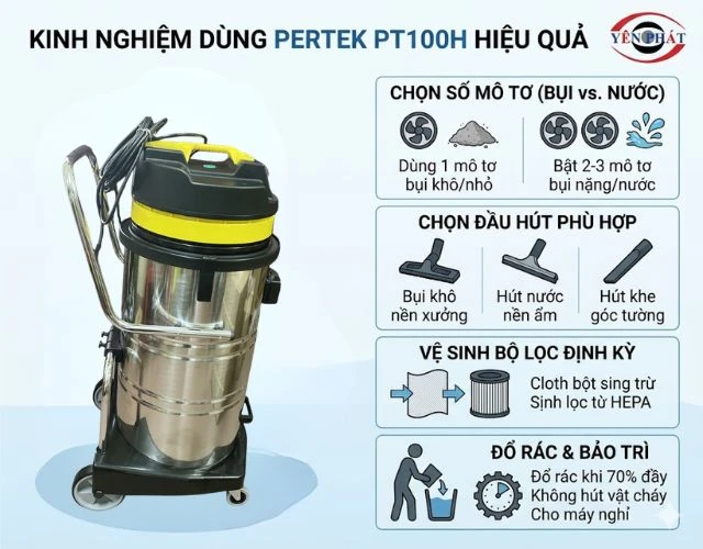Quý khách cần tìm hiểu thêm máy hút bụi công nghiệp Pertek PT100H (New 2003), hãy liên hệ ngay với Yên Phát.