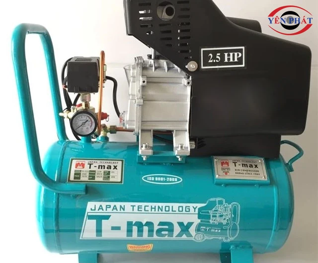 Lựa chọn hoàn hảo tiếp theo cho nhu cầu bơm lốp xe máy, ô tô, xì hơi thổi khô là T-Max 24L - 2,5 HP. Đây là máy nén khí có dầu, dung tích bình chứa 24 lít, vận hành trực tiếp.