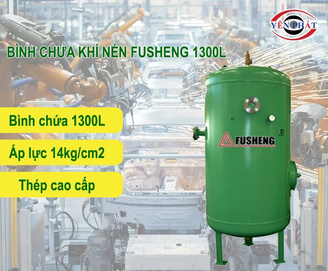 Bình chứa Fusheng 1300L có tổng dung tích lên tới 1,3m3. Cao gấp 5-10 lần sức chứa của các máy nén khí quy mô vừa và nhỏ.