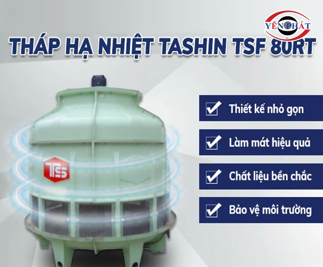 Tháp giải nhiệt TASHIN TSF 80RT có giao diện cực nhỏ gọn, dễ tìm nơi bố trí. Đặc biệt, năng lực làm mát cũng rất đáng gờm, khi vận hành không tốn mấy điện năng.