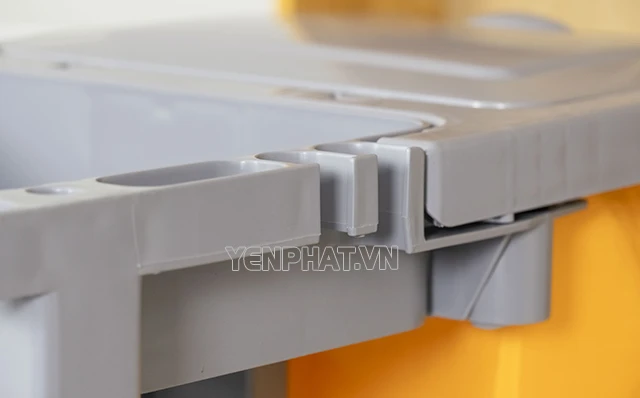 Bên cạnh đó, xe đẩy vệ sinh 3 tầng này còn được trang bị thêm túi đựng rác màu vàng từ vải cao cấp bền bỉ, chống thấm nước để đựng các loại rác thải trong khi làm vệ sinh. Túi đựng rác có nắp đậy, ngăn mùi hôi khó chịu từ rác thải ra ngoài môi trường, đảm bảo vệ sinh hơn.