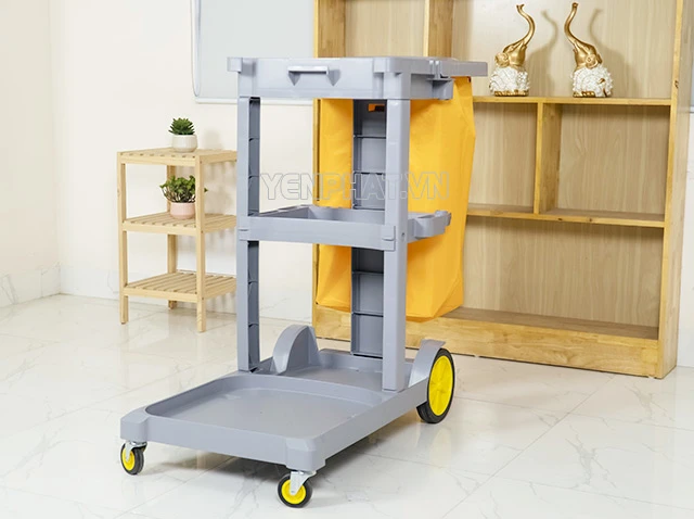 Xe đẩy có thiết kế tiện dụng, để được nhiều vật dụng vệ sinh