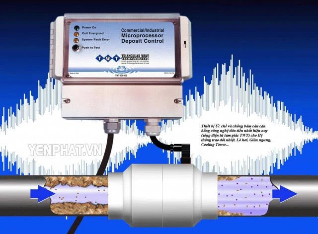 Thiết bị xử lý cáu cặn hệ thống chiller bằng sóng tam giác TWT là một thiết bị tiên tiến được ứng dụng phổ biến trong việc chống bám cáu cặn, rong rêu,... thiết kế cho những hệ thống như hệ thống cấp nước một lần, hệ thống trao đổi nhiệt, hệ thống lọc hóa dầu, hệ thống làm lạnh, Cooling Tower,...